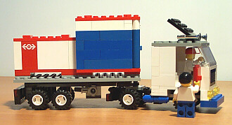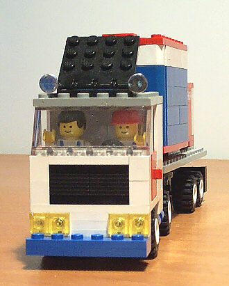 | Die nächste Herausforderung war die Konstruktion eines passenden Lkw für die grossen Container. Hier sollten endlich auch Fahrer UND Beifahrer nebeneinander sitzen können.
